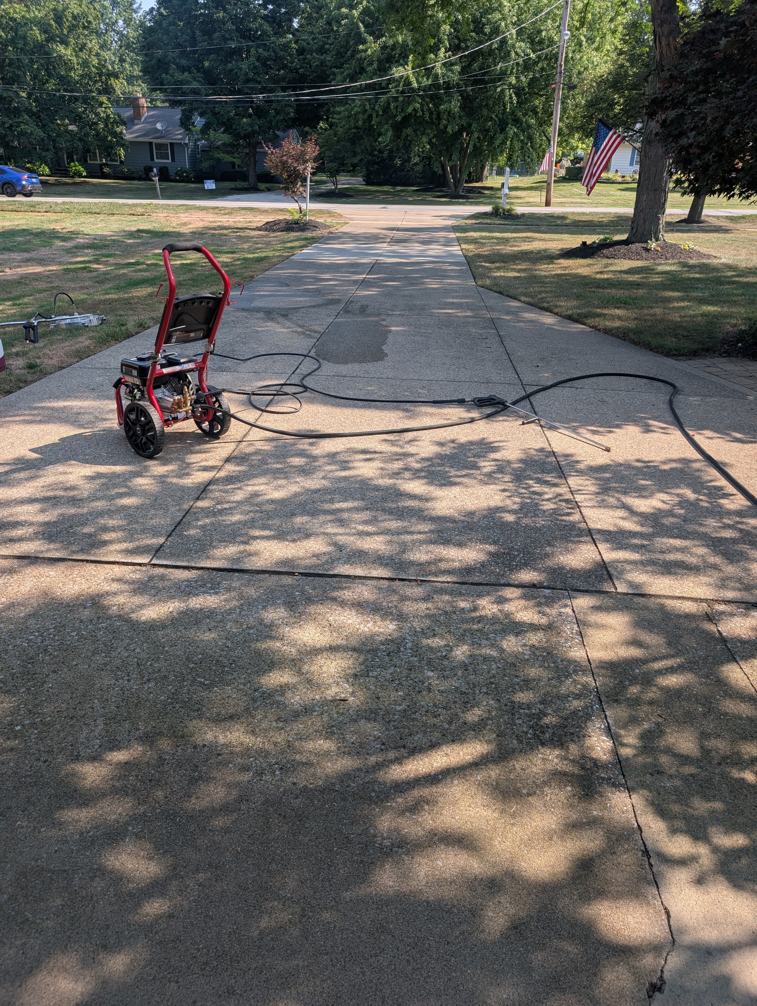 • Dual-Pass Surface Cleaning: Utilize an 18-inch commercial-grade, twin-turbo nozzle surface cleaner to methodically cover the entire driveway in overlapping passes, ensuring an even, streak-free finish across all concrete.